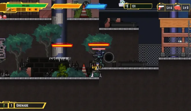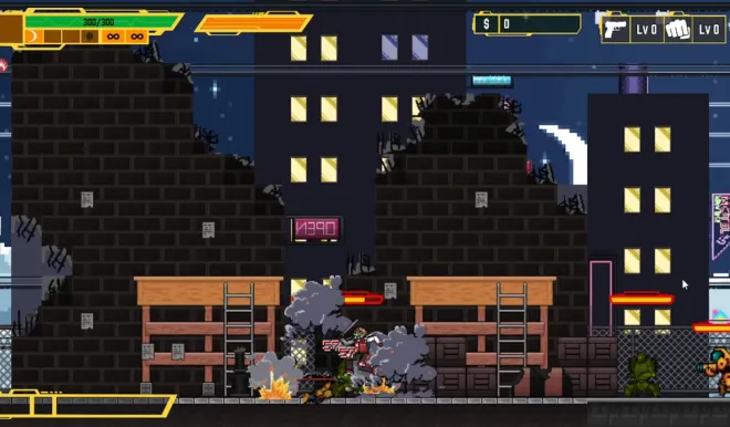 Feel the rush of tight 2D action inspired by classic arcade combat. Run-and-gun, dash, slash, and combo your way through fast, responsive encounters, then unlock permanent upgrades between runs in classic roguelite fashion.