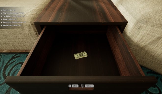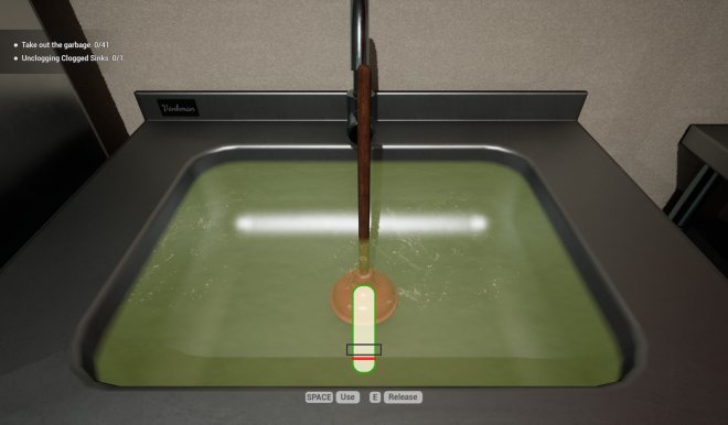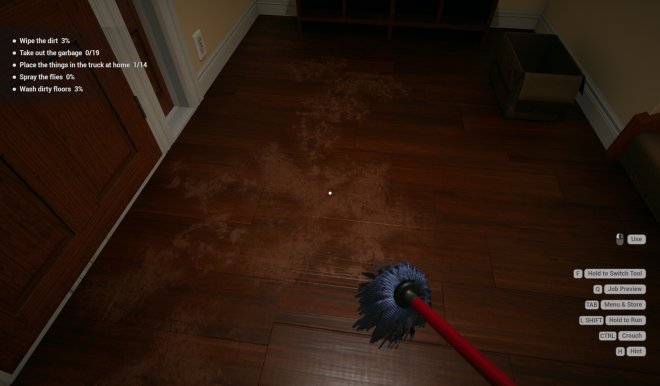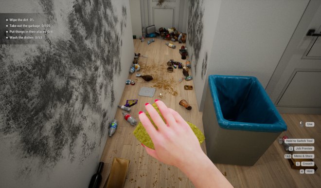 Whether you play just to unwind or aim to complete every task and earn the title of Cleaning Master, the game lets you play your own way. Mop the floors, scrub surfaces with the sponge, load the dishwasher, take out the trash, spray the flies, vacuum the carpets, organize scattered items, and blast away stubborn grime with a pressure washer!