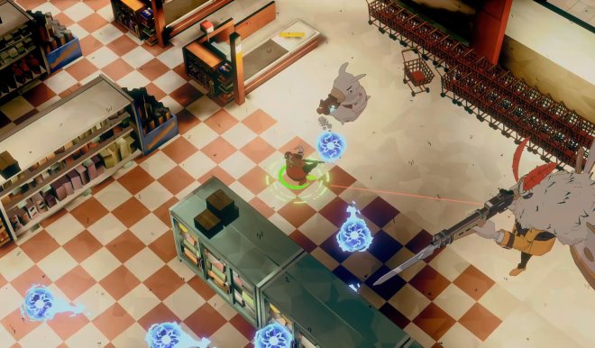 Experience a new type of action-adventure, featuring a fusion between exploration within an expansive world and highly technical twin-stick shooting. At your home base, power up the demon king Damon and make purchases. During the exploration phase, defeat enemies to complete each area. The story progresses as you alternate between the two phases.