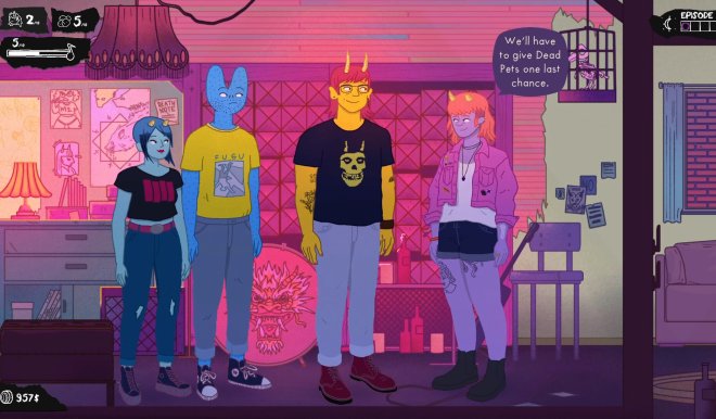 Dead Pets is a feminist, management-lite, minigame-heavy, slice-of-life, narrative game; about music, friendship, and maturing. Playing as Gordy, you’ll go to band practice, manage Gordy’s finances, her wellbeing, and try to find enough time and money to cover... well, everything.