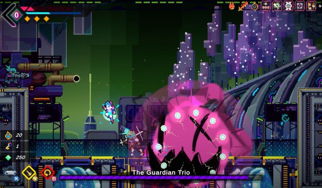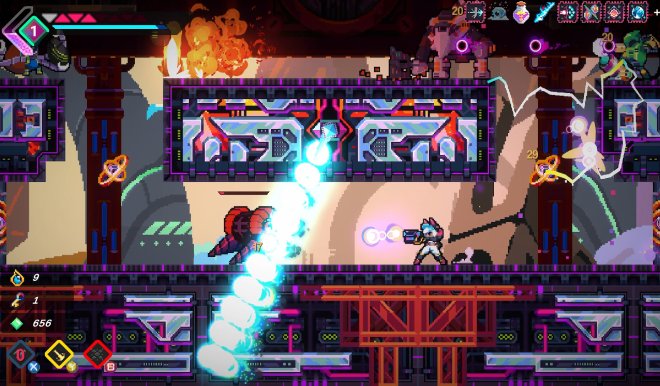 Dash, dive, and shoot your way through stages filled with dynamic enemies, all while performing perfectly timed precision parrying.