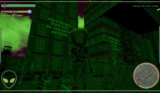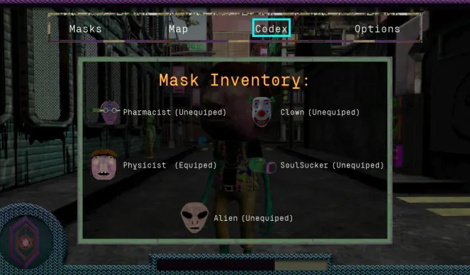The world itself is the story. The Lavender Corporation, an evil group from the mainland, works with an alien civilization to control the island and everyone who lives on it. To fight back, you'll accept missions, meet contacts, and find masks with different abilities.