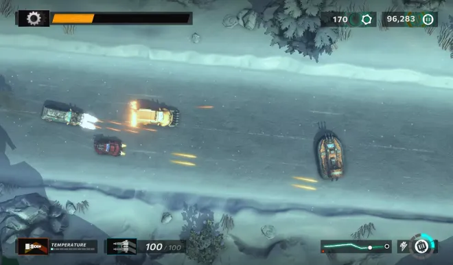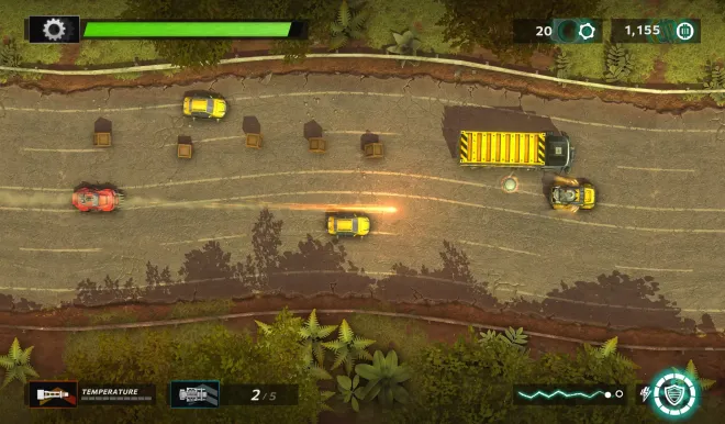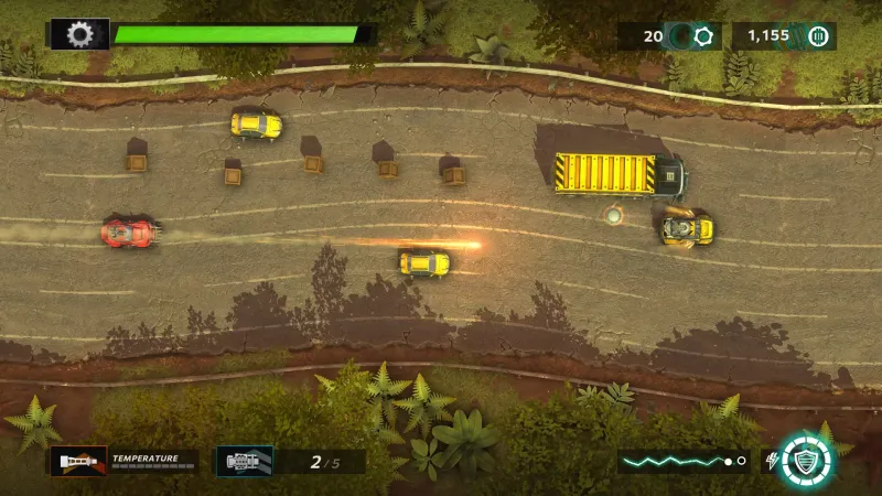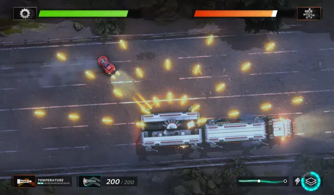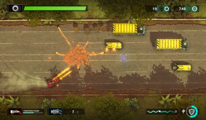 Arcade shoot-’em-up roguelite. Steer, blast and battle through enemy vehicles, and annihilate bosses. Adapt your loadout of mods, defences and weapons for each hazardous mission.