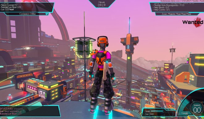 You're in charge of a team of young rebels, the Gamers, fighting against the new anti-leisure laws oppressing the city. Equipped with high-tech gears allowing amazing jumps and speed, they roam the city to sabotage the propaganda, help citizens, and find a way to reach the Orbital Station. This way they could warn the Galactic Union and put an end to the oppression.