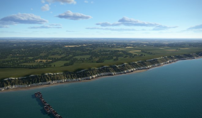 - 107,924 Sq. km map of southern England northwest France with 100 accurately portrayed historical airfields.