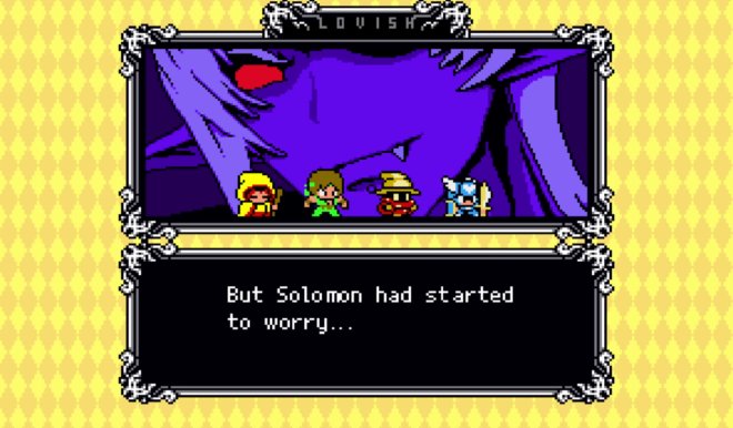 LABS and Matt Kap present Lovish, an outrageous 8-bit-styled action-adventure game! Venture through a series of bite-sized rooms, slicing up monsters, collecting items and getting to the exit! After exiting each room, enjoy a short event scene, in which anything could happen! Will you find an item? A random encounter RPG fight? Will the world get destroyed? Find out by conquering each room of the Devil Lord's castle, one challenge at a time!
