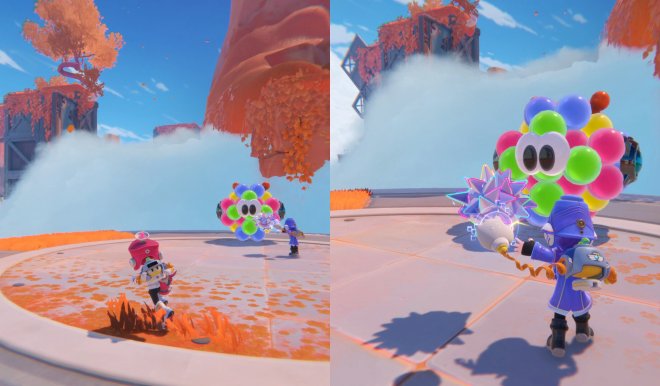 Color plays a crucial role in this fantastical world. It is key to everything from puzzle solving to combat. You'll need to switch colors to activate mechanisms and solve puzzles, and shoot Pomu gel in different colors to change the surroundings and impact enemies. Master the techniques of color switching and match-3 shooting to overcome puzzles and defeat enemies!