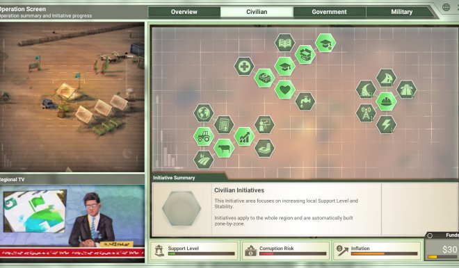 In Rebel Inc: Escalation, the war is ‘over’ - but we all know that doesn't mean anything. In order to stabilise a war-torn country, you need to balance competing military and civilian priorities to win the hearts and minds of the people, whilst also stopping a deadly insurgency from seizing power!