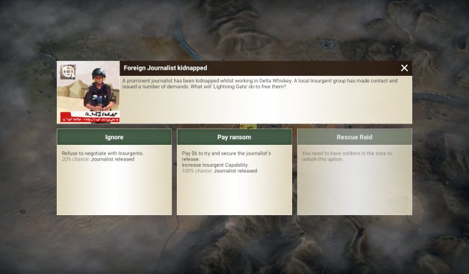 • Advanced civilian and military AI - Sophisticated narrative algorithms model the needs of local populations, while deadly insurgent attacks put constant pressure on your operation.