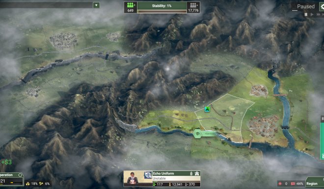 • 8 regions to stabilise - Deploy to wildly different strategic environments, including the gentle farms of ‘Saffron Fields’, or the impenetrable forests of ‘Distant Steppe’. Work to defend the ‘Azure Dam’ from the Insurgency, or develop unique new strategies to counter the drug trade in ‘Opium Fields’.