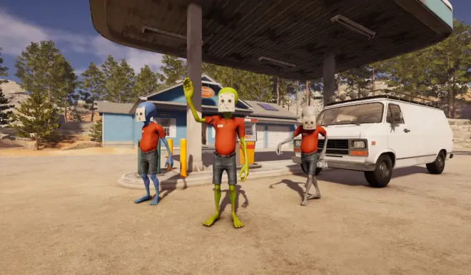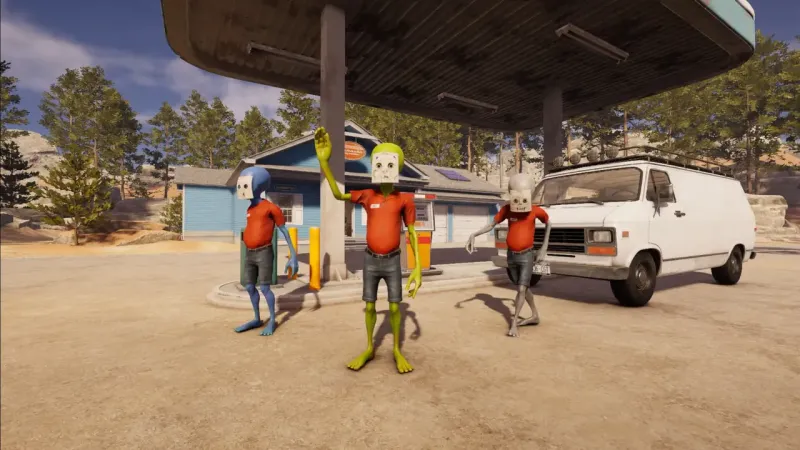 • Chaotic solo or co-op fun: Gather friends or play alone to manage the gas station while pursuing your alien mission.
