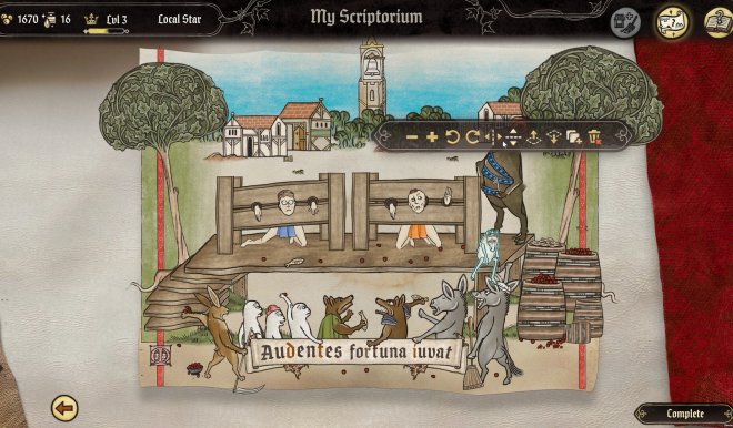 • Prefer pure creativity? In Sandbox Mode, Scriptorium becomes your medieval “Canva”. Blank parchment, the entire library of medieval assets, and no clients or commissions - just you and your boundless imagination!
