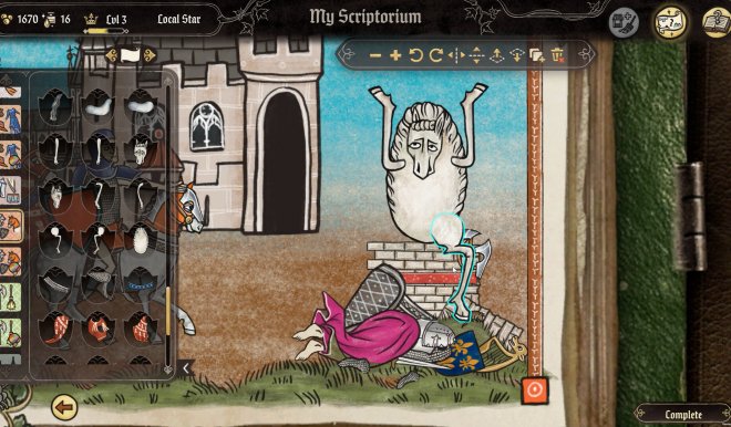 Turn your Scriptorium into the coziest workshop in the kingdom. Spend your earnings to decorate your space with furniture, lighting, tapestries, flowers, windows, columns, and carpets - then make it truly yours with a pet companion by your side, from a purring cat to a loyal dog, or even a tiny dragon. Home is where the art is!
