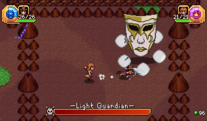 Shrine's Legacy is an action RPG inspired by the best SNES classics. Explore a vast overworld while fighting in real-time battles using a robust combat and equipment RPG system. As a heroic party of two, one companion will always be there to help, either controlled by the game or by a friend in co-op.