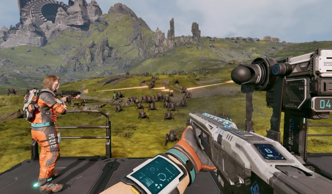 The planet will surprise you at every turn. Extreme temperatures are not the only things you’ll be challenged with. Get ready to defend yourself, your team, and your base from a horde of aggressive alien creatures.