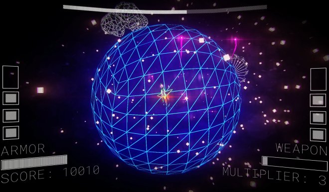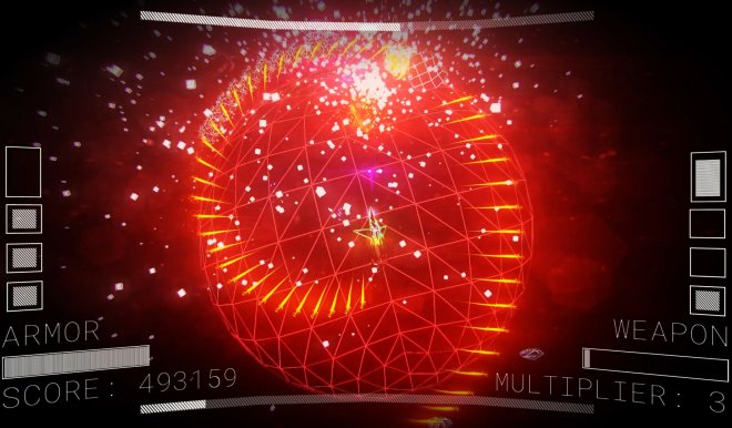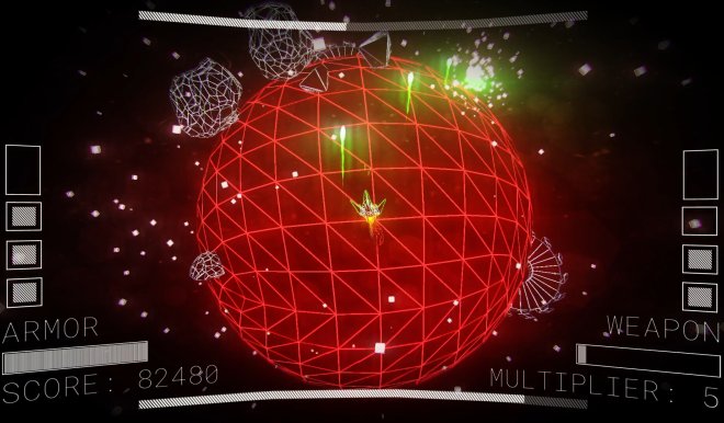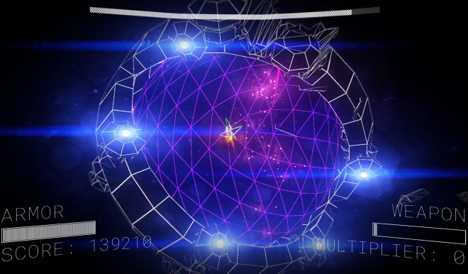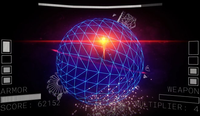 The visuals of Stratogun draw influence from the arcade classics. Wireframe aesthetics are combined with a kick-ass soundtrack ensuring that this would indeed be something you'd find in an arcade, if those establishments would still be a thing.