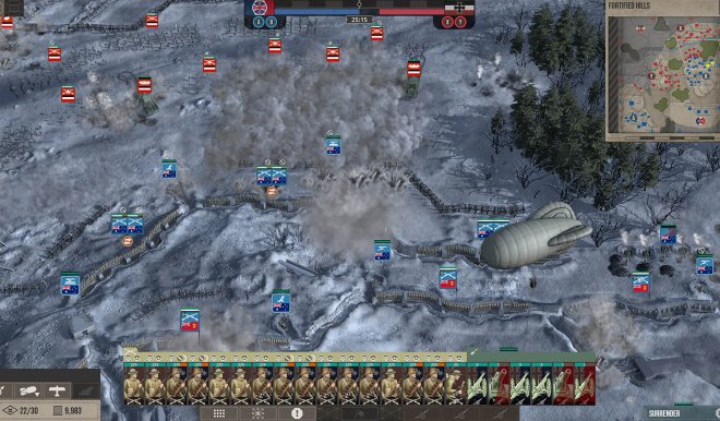 Carve your strategies into the landscape by creating complex trench networks which will remain upon your return, as you seek to push the enemy back inch by inch. Shifting weather also plays a role; as the months draw on in the conflict, you’ll encounter weather changes such as snow and rain which will affect things like artillery performance and unit movement. To secure victory, you’ll need to carefully consider your strategy depending on the conditions.