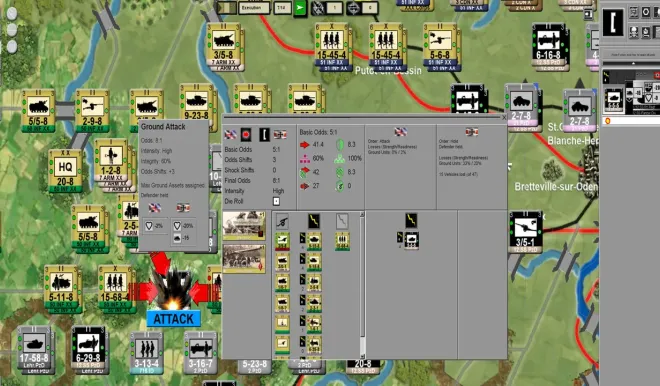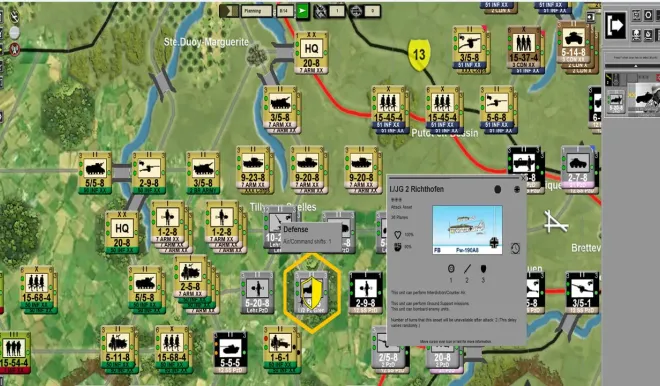 Air assets represent Allied and German air groups that can conduct counter-air, interdiction, air resupply, bombardment, and ground support missions. Air reconnaissance assets can collect critical information about enemy location, unit types, and strengths.